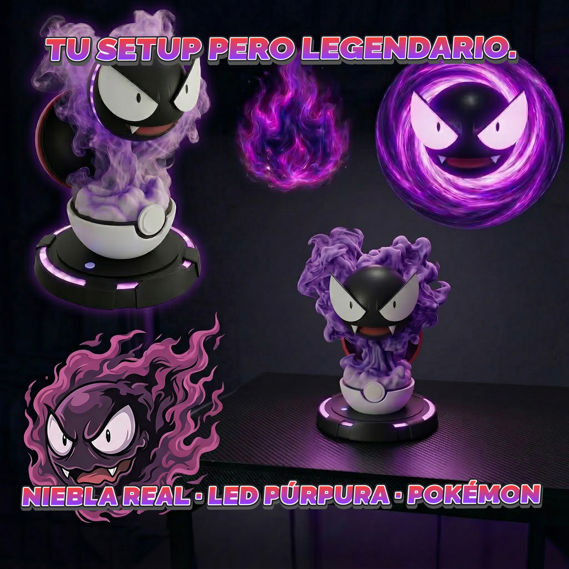- Figura Gastly Humidifier sobre base Poké Ball